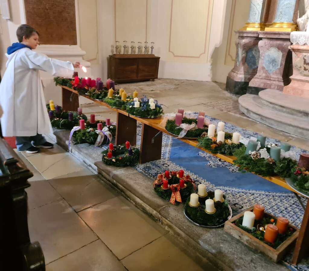 Einige Kinder der Jungschar fertigten heuer Adventkränze an und brachten sie auch zur Segnung am Samstag in die Pfarrkirche.