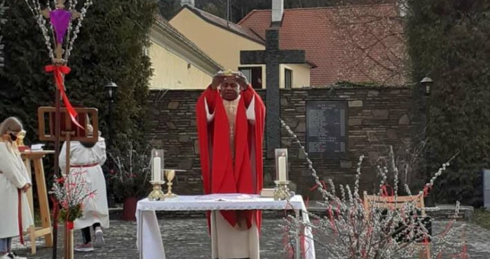Der Gottesdienst am Palmsonntag wurde im Freien gefeiert. Die…