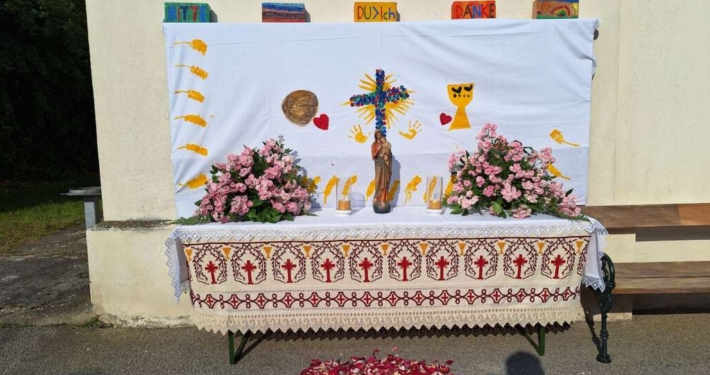 Am Fronleichnamstag feierten wir den Gottesdiest bei der Kapelle…