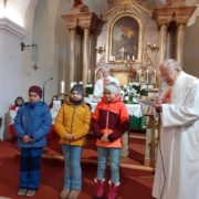 Emilia Bürger, Melissa Maurer und Luise Scheidl traten ihren Dienst als Ministrantinnen an. Pfarrer Michael Wagner, Diakon Herby Köllner und die bereits im Dienst gestellte Mini-Schar gestalteten die heilige Messe.