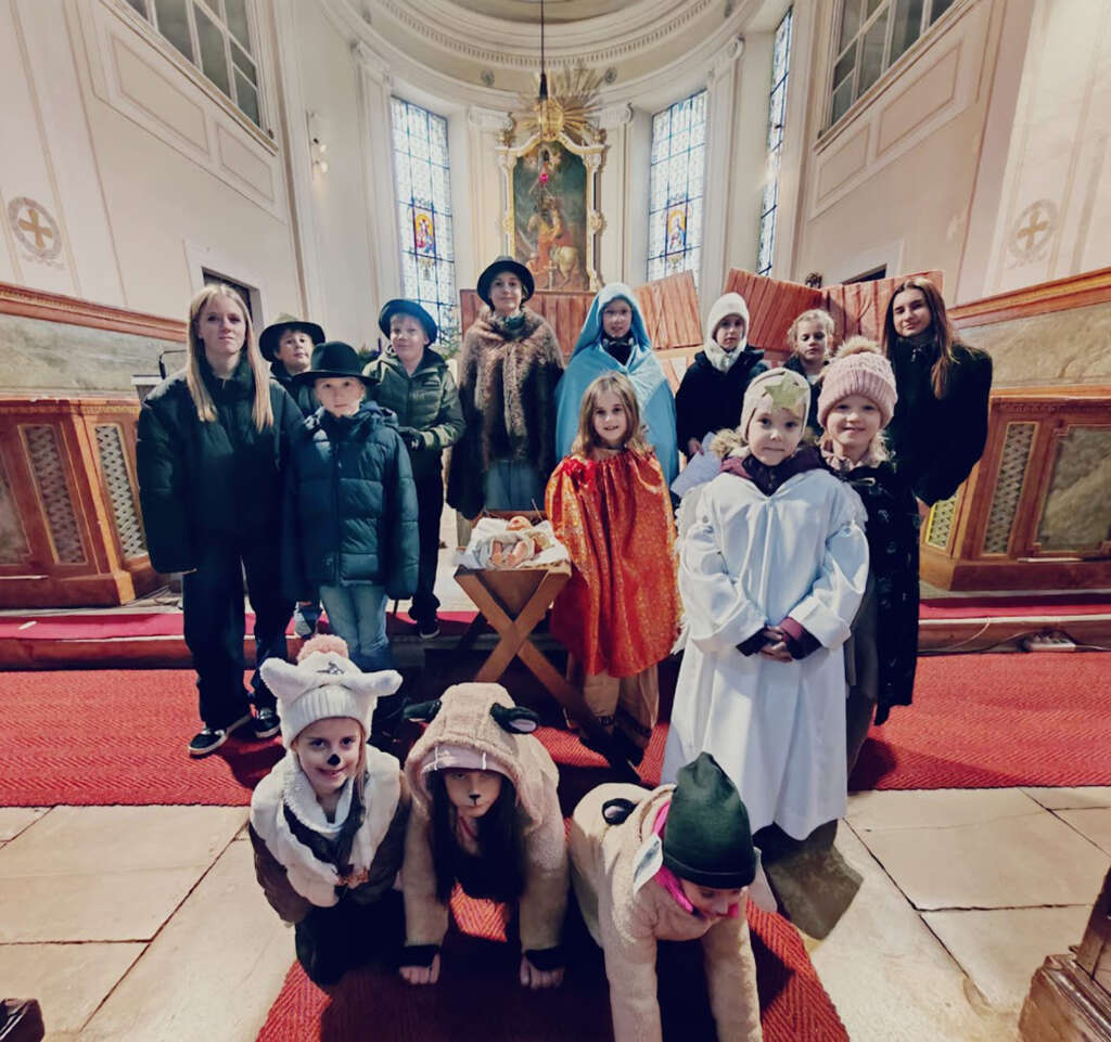 PAss. Darko Trabauer leitete den offiziellen Teil und Katharina Gomolka-Effenberger und Verena Schüller bestritten den musikalischen Teil. Die Organisation des Krippenspieles lag in den Händen von Florentina Fichtinger und Violetta Raschbauer, die mit den Kindern die Texte einstudierten. Die Weihnachtsbotschaft wurde den zahlreichen Besucherinnen und Besuchern näher gebracht.