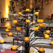 Die Taufe Jesu war das Thema des Gottesdienstes und die Zusage Gottes, die nicht nur für Jesus, sondern für uns alle gilt: Du bist mein geliebtes Kind! Lebe und entfalte das, was in dir grundgelegt ist! Dieser Auftrag wurde in den aufblühenden Blumen zum Ausdruck gebracht. Mit Kerzen in den Händen sprachen wir das Glaubensbekenntnis, in dem wir uns an die Taufe erinnern und auch daran, dass wir Licht sein können für andere Menschen. Mit den Lichtern vertrauten wir auch unsere „Sorgenkinder“ – Menschen, für die wir ganz besonders beten – Gott an. Umrahmt wurde die Messe von schwung- und stimmungsvollen Liedern und Texten.