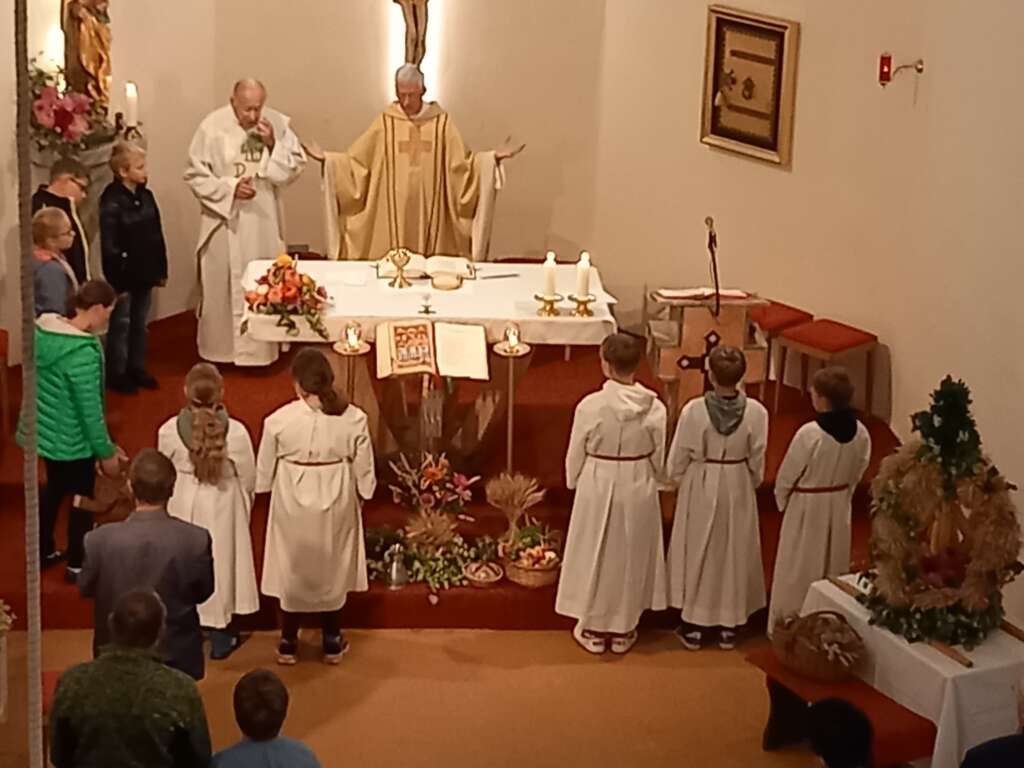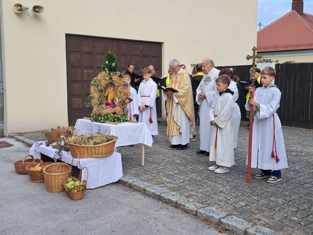 Danach zogen alle gemeinsam mit der wunderschön geschmückten Erntekrone und den Früchtekörben, die von der Ortsbevölkerung befüllt wurden, in die Kirche ein, um gemeinsam zu feiern, zu beten und zu singen.