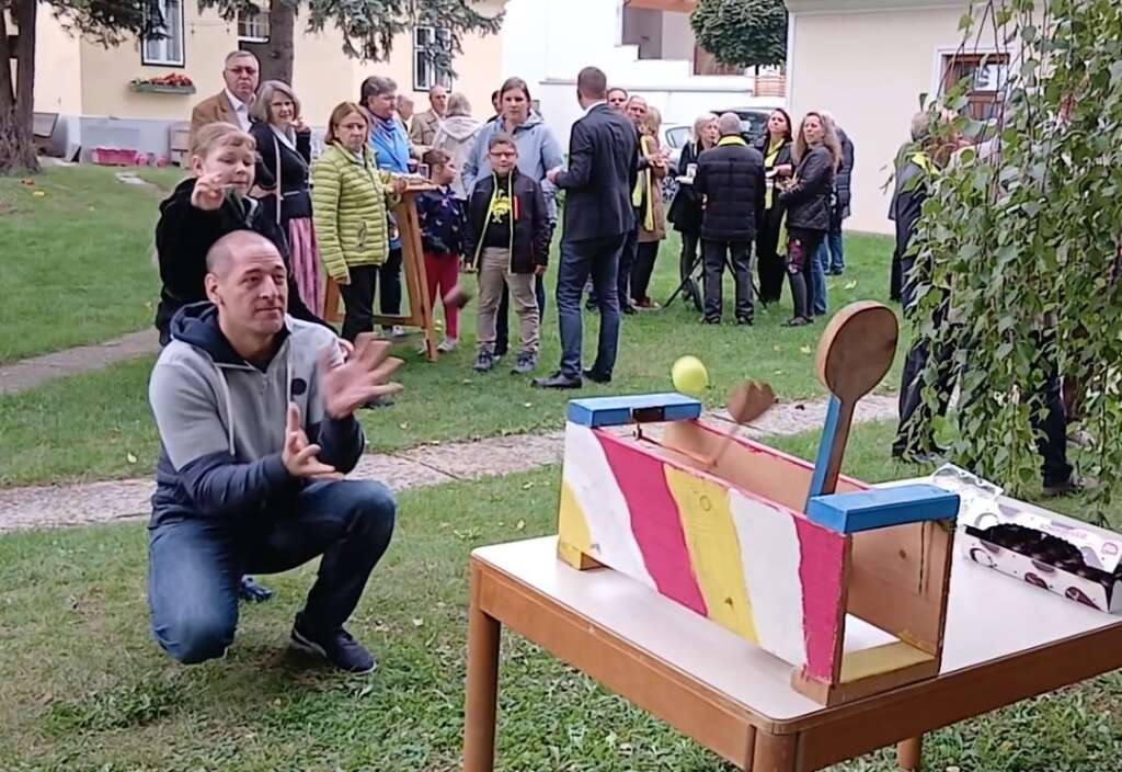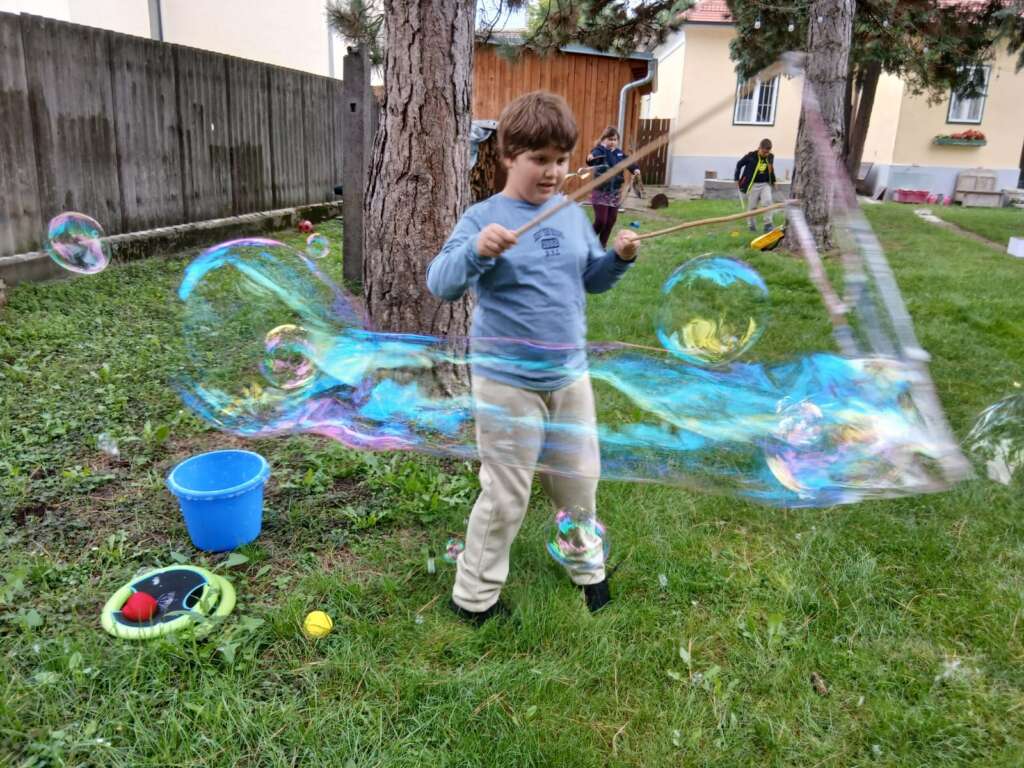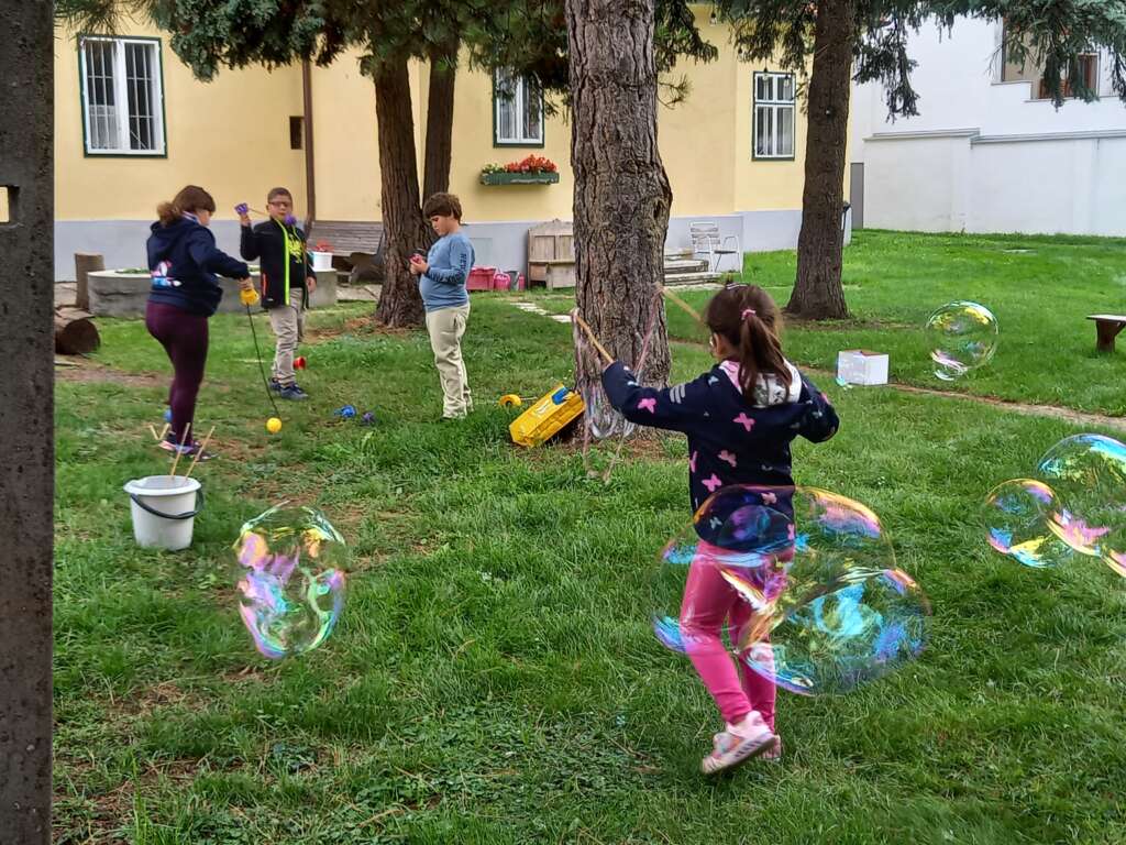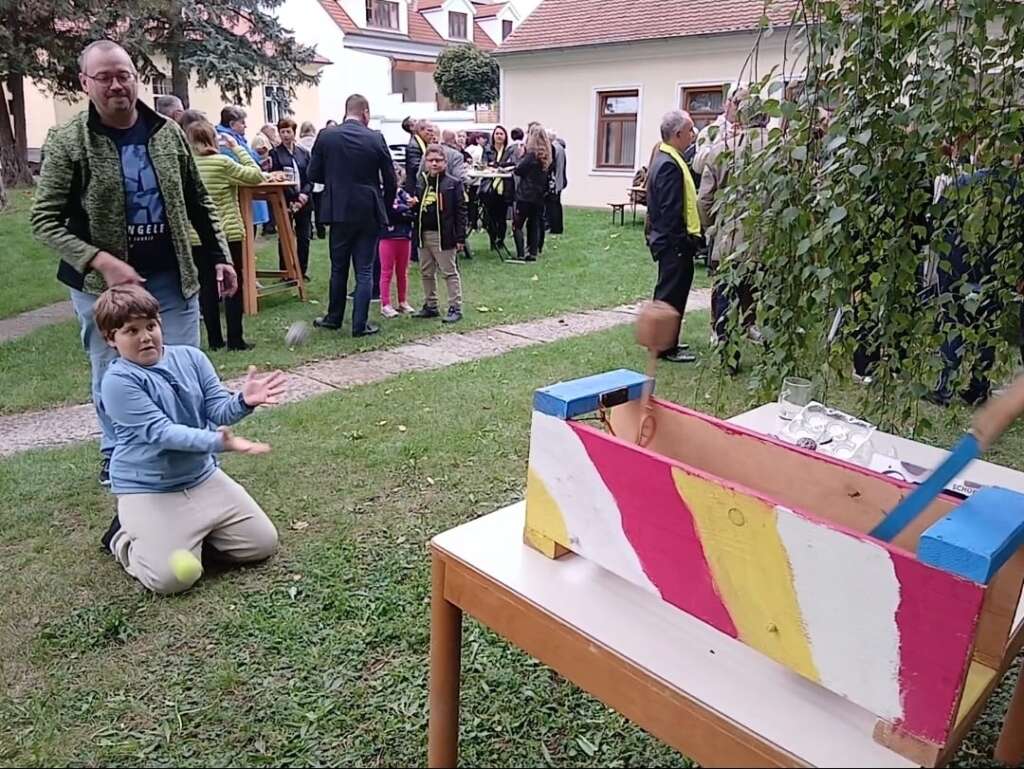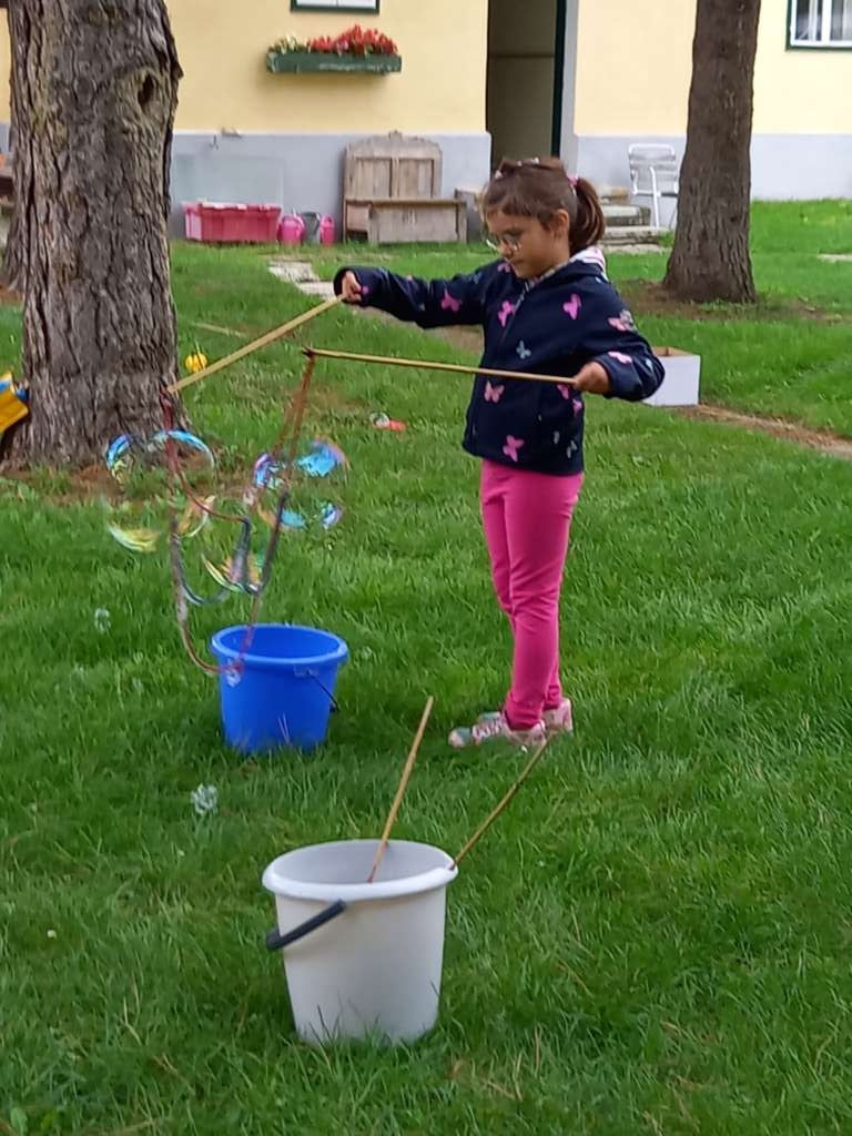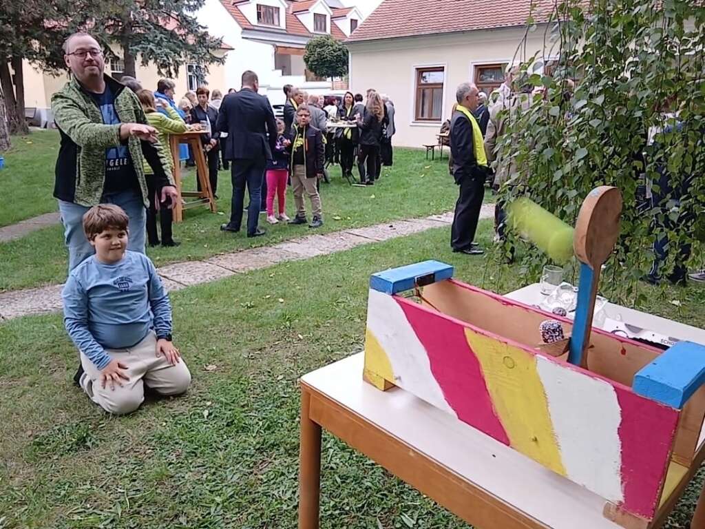 Nach der Messe lud der Pfarrgemeinderat zur Agape in den Pfarrgarten, wo sich die Kinder noch an der Schwedenbombenmaschine, beim Kreieren von Riesenseifenblasen oder beim Dosenschießen austoben konnten, während sich die Erwachsenen bei sündhaft guten hausgemachten Mehlspeisen und knackfrischem Jourgebäck laben konnten.