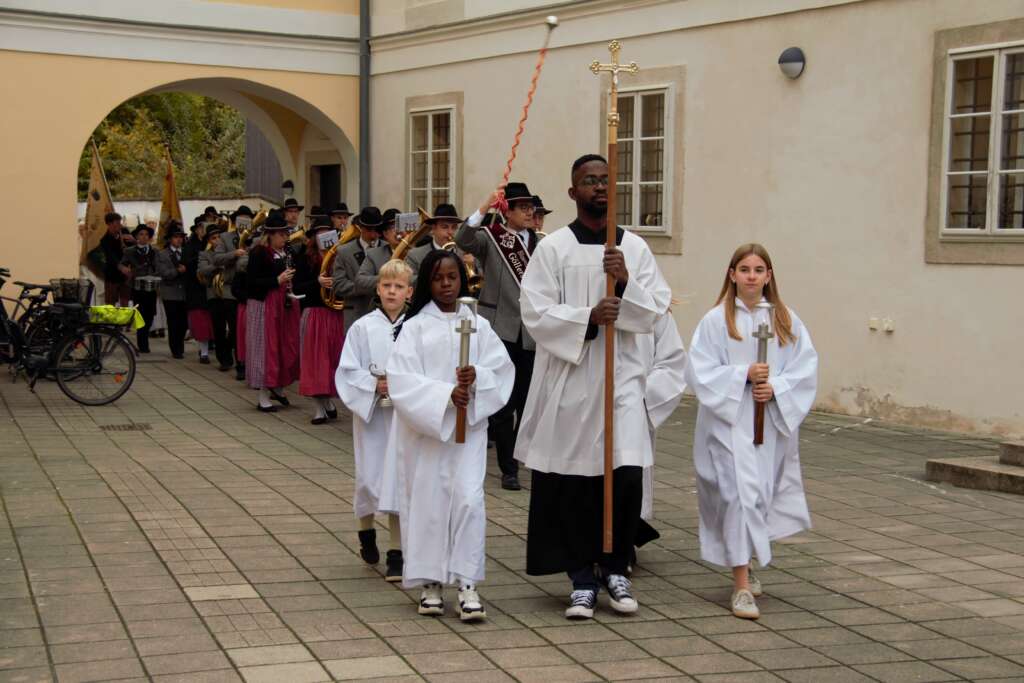 Nach einer Begrüßung marschierte der Festzug, begleitet von den Klängen der Blasmusik, vom Hauptplatz zur Kirche.