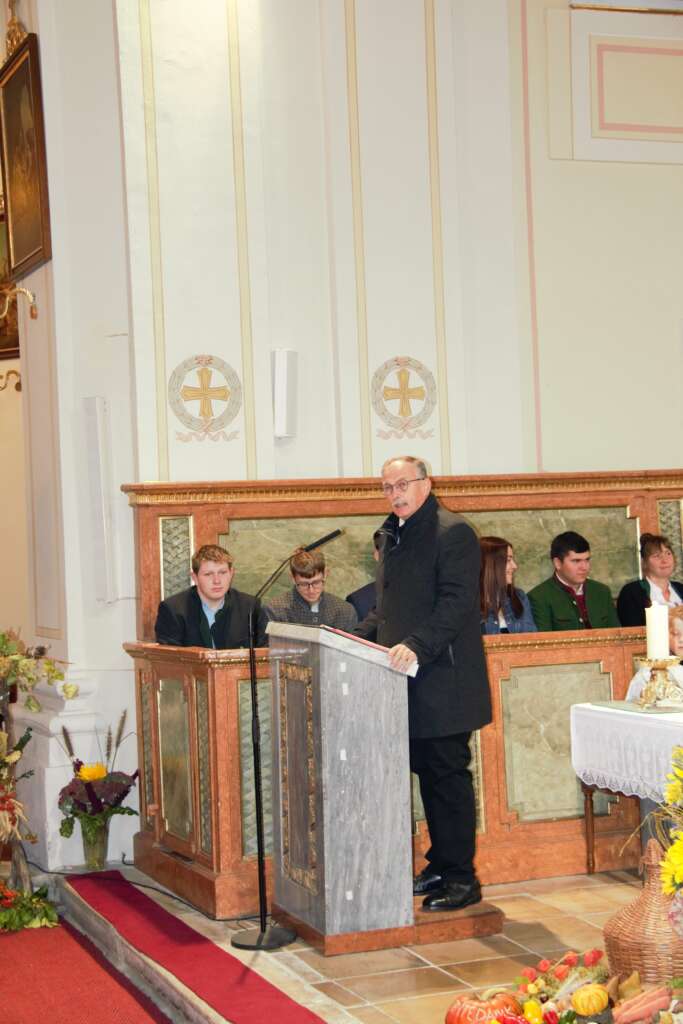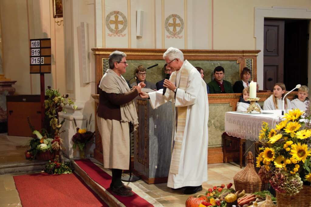 In der Predigt wies WB Turnovszky unter anderem auf die Dankbarkeit hin. Wenn wir Erntedank feiern, dann dürfen wir nicht auf den „Geber“ vergessen. Daher ist auch das Tischgebet so wichtig.