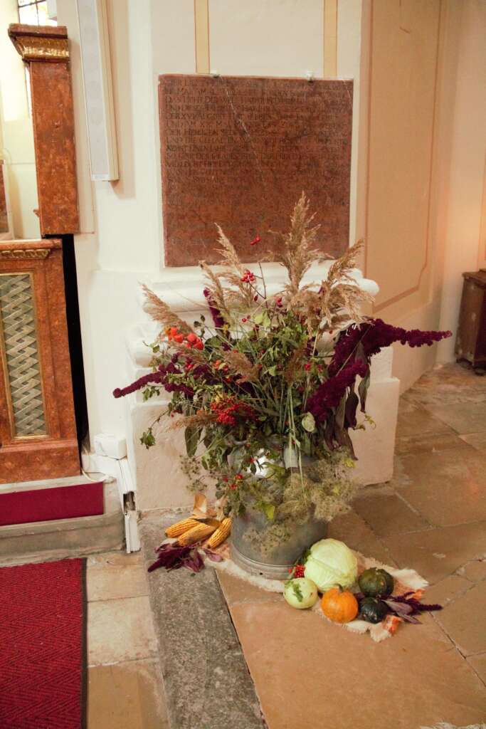 Petra Wolf und viele Helferinnen flochten einen Schwibbogen für das Kirchenportal, viele Frauen trafen sich zum Binden der Erntesträußchen in Viendorf und unsere Blumendamen kümmerten sich um den wunderbaren Kirchenschmuck.