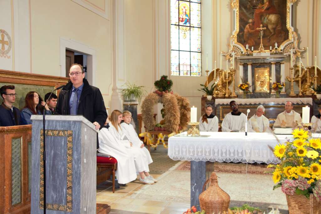 In der Predigt wies WB Turnovszky unter anderem auf die Dankbarkeit hin. Wenn wir Erntedank feiern, dann dürfen wir nicht auf den „Geber“ vergessen. Daher ist auch das Tischgebet so wichtig.