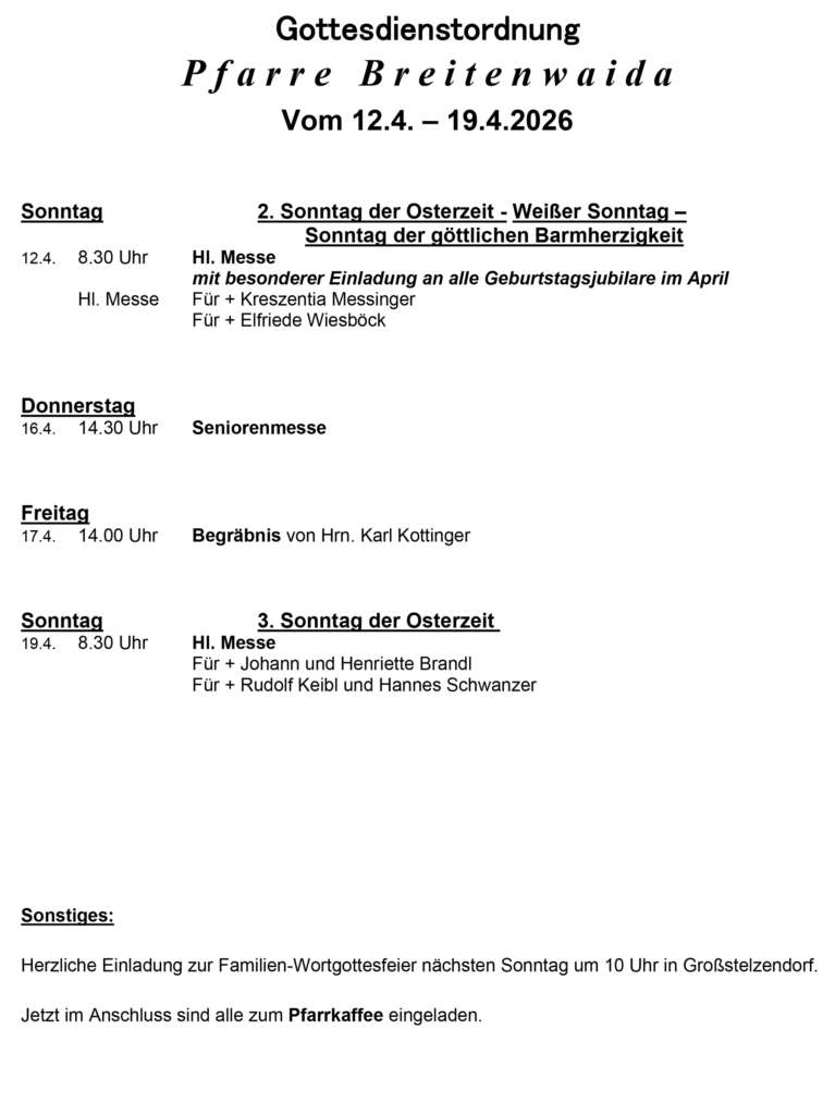 Gottesdienstordnung Breitenwaida