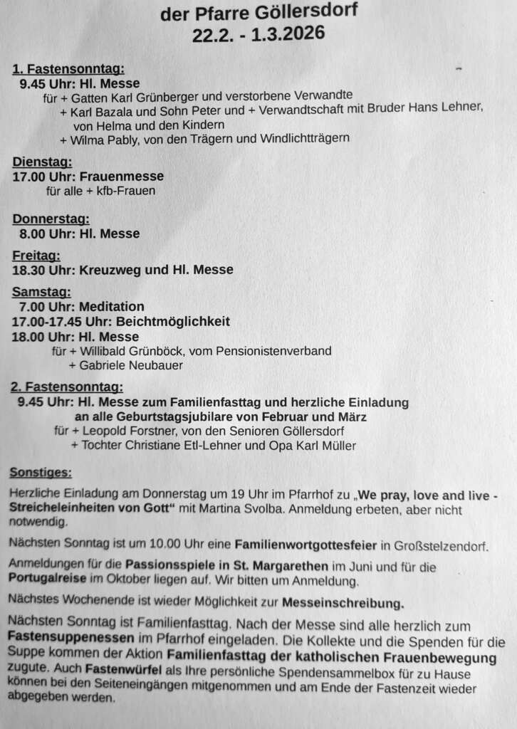 ArchivGottesdienstordnung Göllersdorf 8. Januar 2026/von Heinrich Kradjel https://goellersbachpfarren.at/wp-content/uploads/2020/02/goellersbachpfarren-logo.png 0 0 Heinrich Kradjel https://goellersbachpfarren.at/wp-content/uploads/2020/02/goellersbachpfarren-logo.png Heinrich Kradjel2026-01-08 19:52:002026-02-22 10:01:10Gottesdienstordnung Göllersdorf