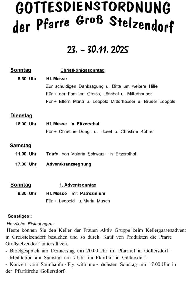 ArchivGottesdienstordnung Großstelzendorf 15. Juli 2025/von Heinrich Kradjel https://goellersbachpfarren.at/wp-content/uploads/2020/02/goellersbachpfarren-logo.png 0 0 Heinrich Kradjel https://goellersbachpfarren.at/wp-content/uploads/2020/02/goellersbachpfarren-logo.png Heinrich Kradjel2025-07-15 19:54:002025-11-23 09:12:59Gottesdienstordnung Großstelzendorf
