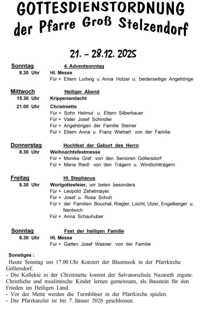 Gottesdienstordnung GöllersdorfGottesdienstordnung Sonnberg