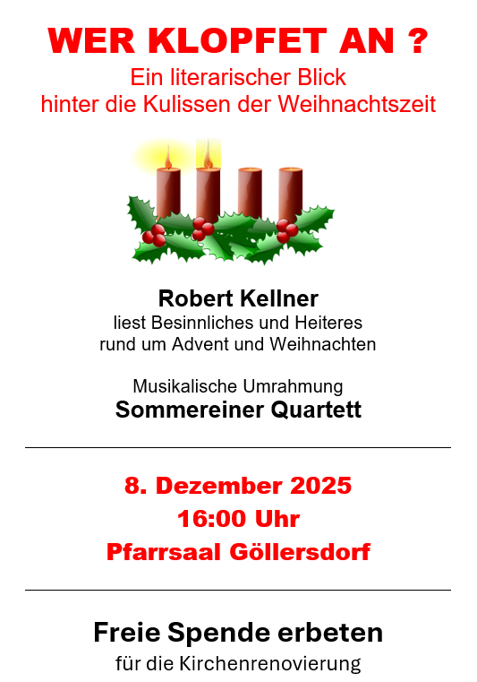 Göllersdorf Pfarrhof Pfarrgasse 33, Göllersdorf, ÖsterreichWer klopfet an? Adventlesung mit Robert Kellner