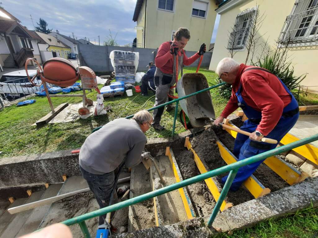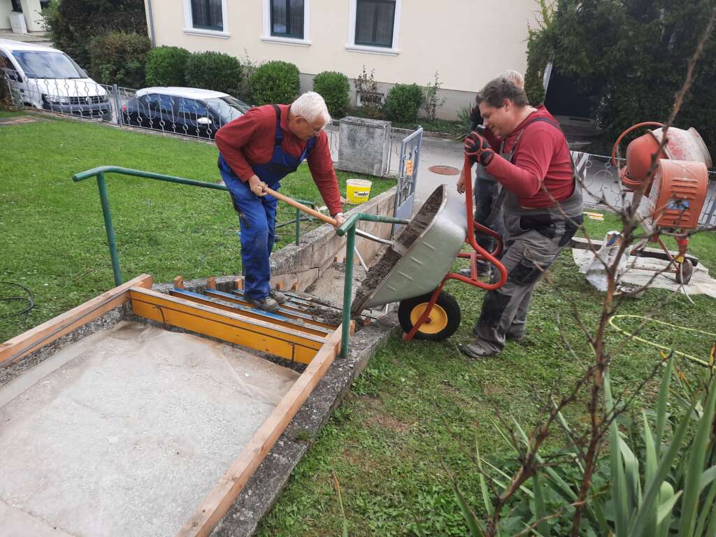 Am letzten Samstag war es dann soweit. PGR Günther Gruber und sein Team begannen mit dem betonieren der Stiegen.