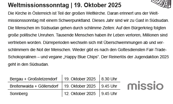Missionssonntag in den Göllersbachpfarren